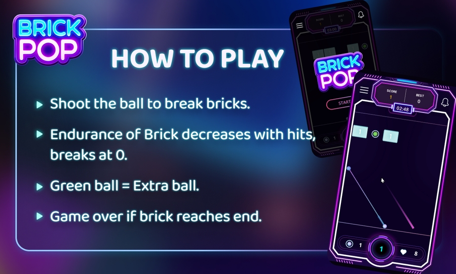 Welcome to BRICK POP, where classic brick-breaking gameplay meets innovative blockchain technology. In this exciting game, players shoot balls strategically to crash bricks and earn points. What sets BRICK POP apart is its unique mechanic: the first dropping point of the shooting ball becomes the next starting point, requiring players to think strategically before each shot. Developed by Sui and LumiWave, BRICK POP seamlessly integrates blockchain technology with low gas fees, offering an immersive gaming experience like never before. With real-time transactions and high user engagement, BRICK POP allows players to create and exchange value directly through gameplay. Get ready to experience the future of gaming, where transparency and real-time processing enhance every interaction.